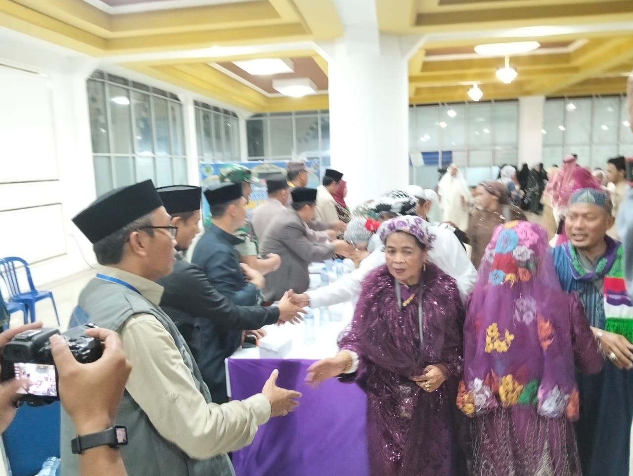 Kedatangan haji yang trgabung dalma kloter 2 ini disambut haru kerabat yang memadati halaman masjid Al Munawir.