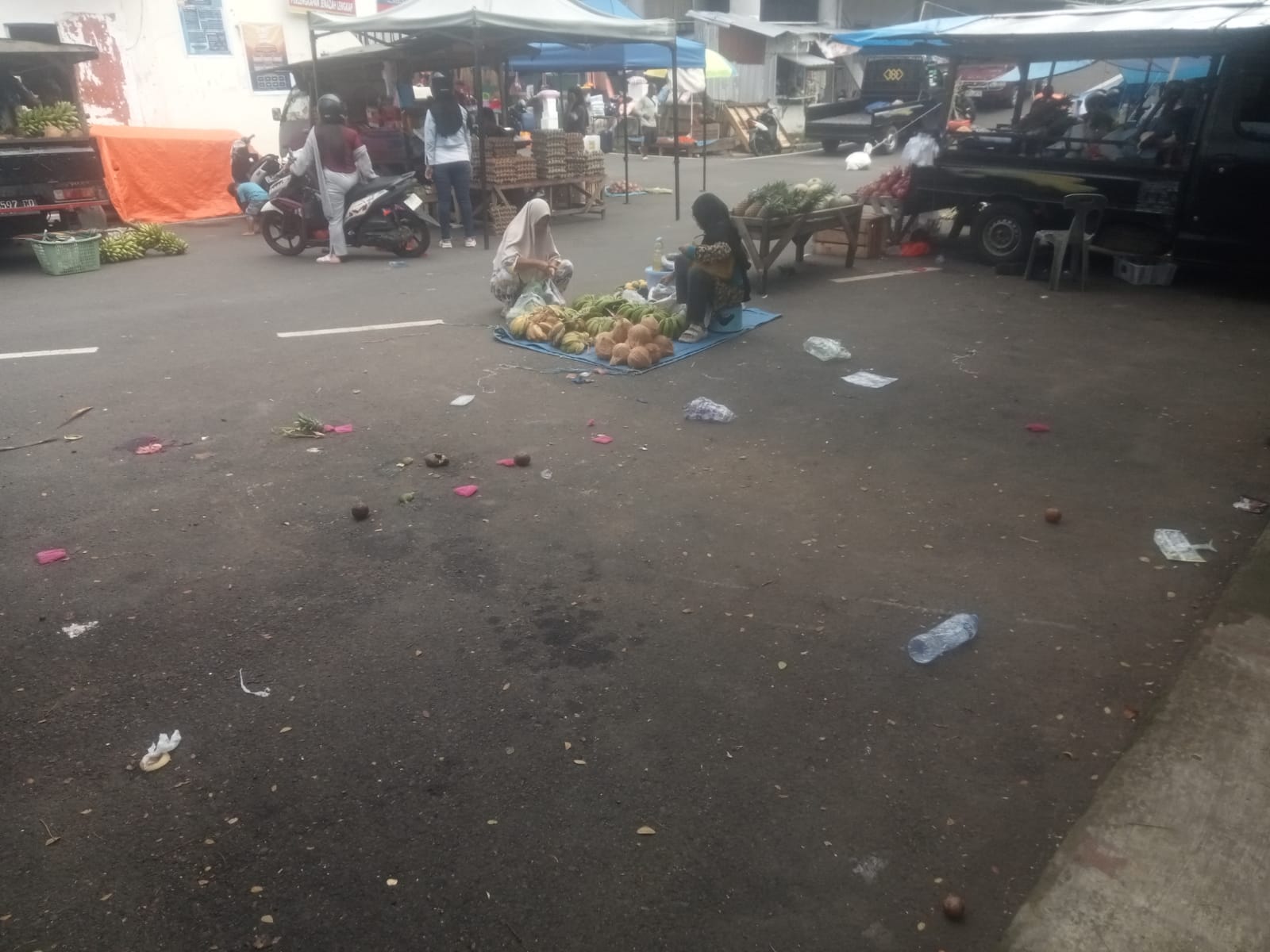 Pengabaian aspek sanitasi dan kebersihan, ini terlihat beberapa diantara pedagang sayur dan buah hanya membuang serampangan sampah di depan atau samping jualan mereka.