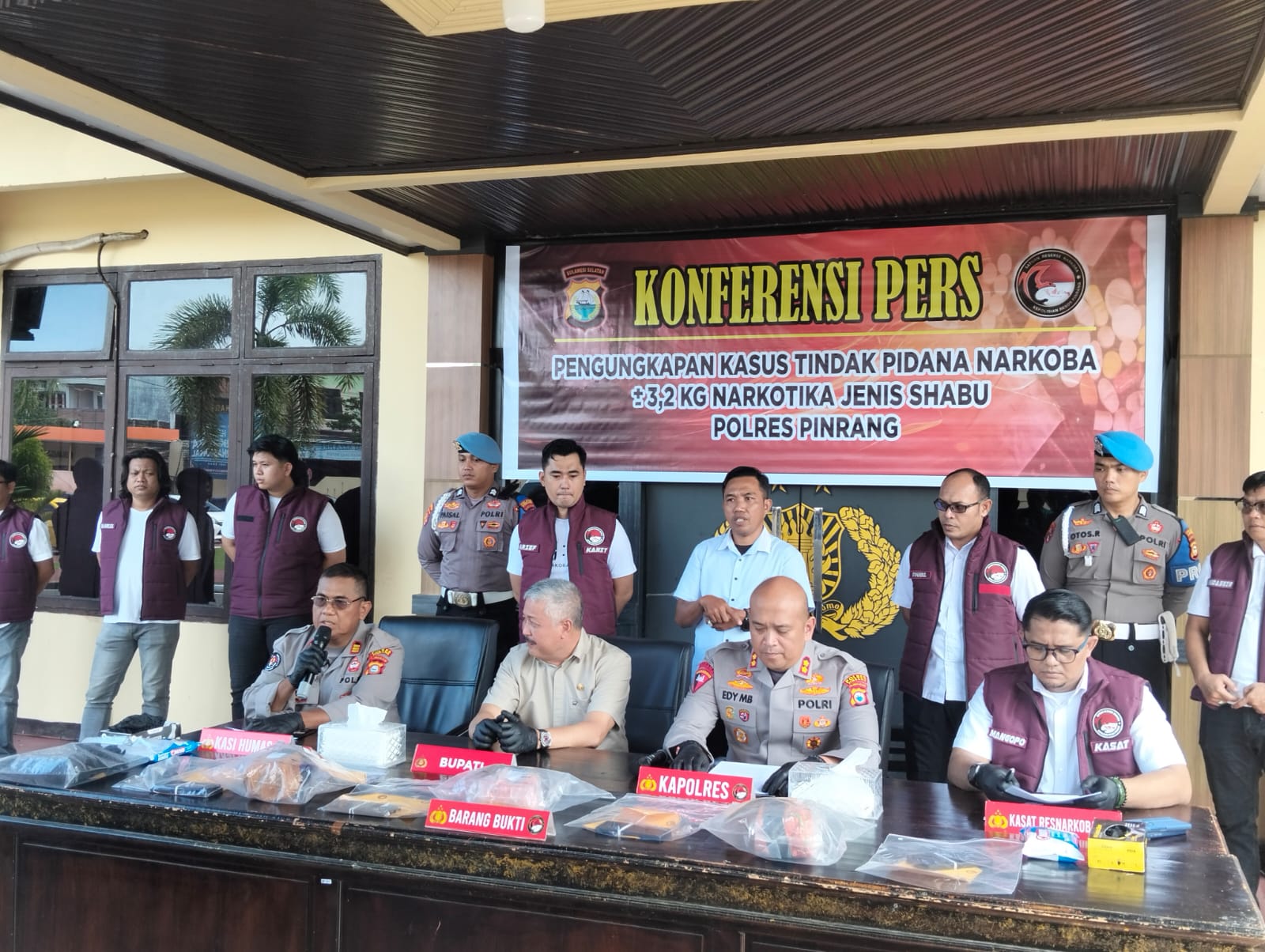 Kapolres Pinrang AKBP Edy Sabhara Manggabarani, mengatakan, terduga pelaku diamankan saat melintas di jalan trans sulawesi kampung Palia Kecamatan Paleteang ” Dan dalam pengembangan, personil Polres Pinrang berhasil menyita 3,2 Kilogram Narkotika Sabu Sabu ” kata dia di Mapolres Pinrang Senin 13 Januari 2026.