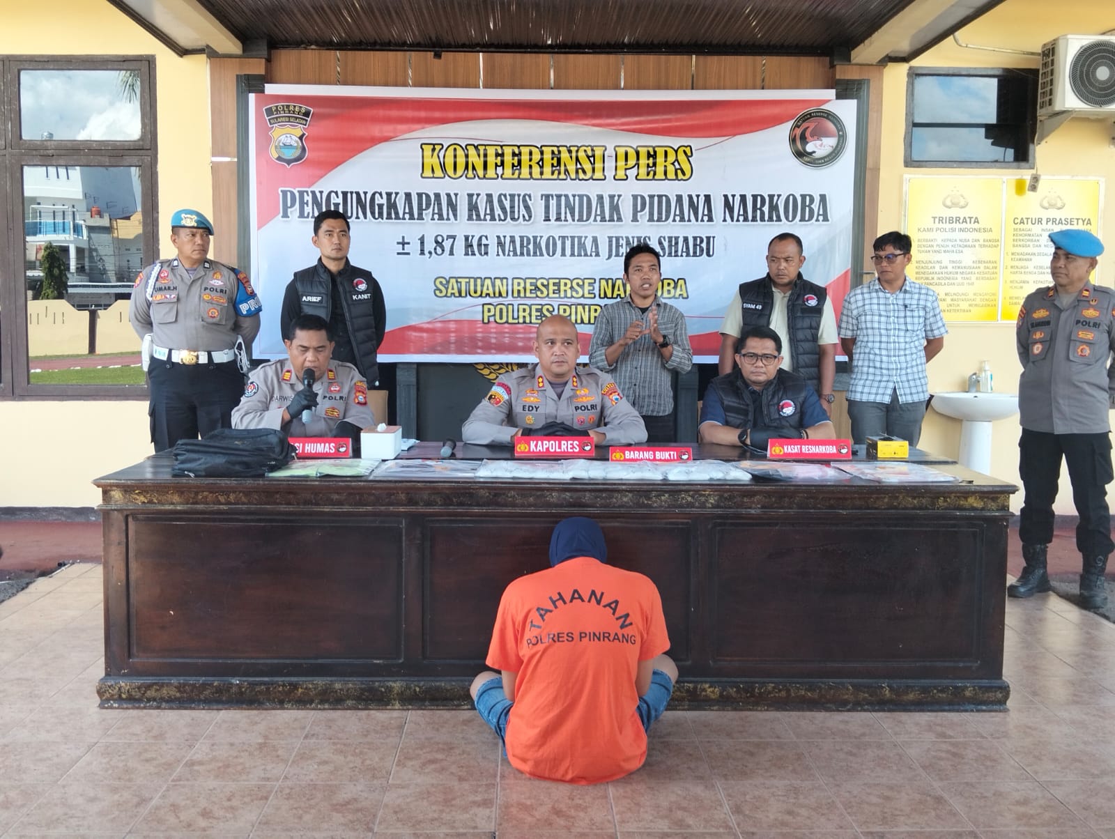 PINRANG — BERITA REVOLUSI ~ Personil Polisi Satuan Narkoba Polres Pinrang mengamankan Sabu 1,87 Kilogram pada minggu 06/07/2025, Barang Haram itu diduga masuk ke wilayah Sulawesi Selatan melalui Pelabuhan Nusantara Parepare.
