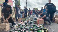 Ribuan Botol Miras Dihancurkan Di Halaman Mapolres.